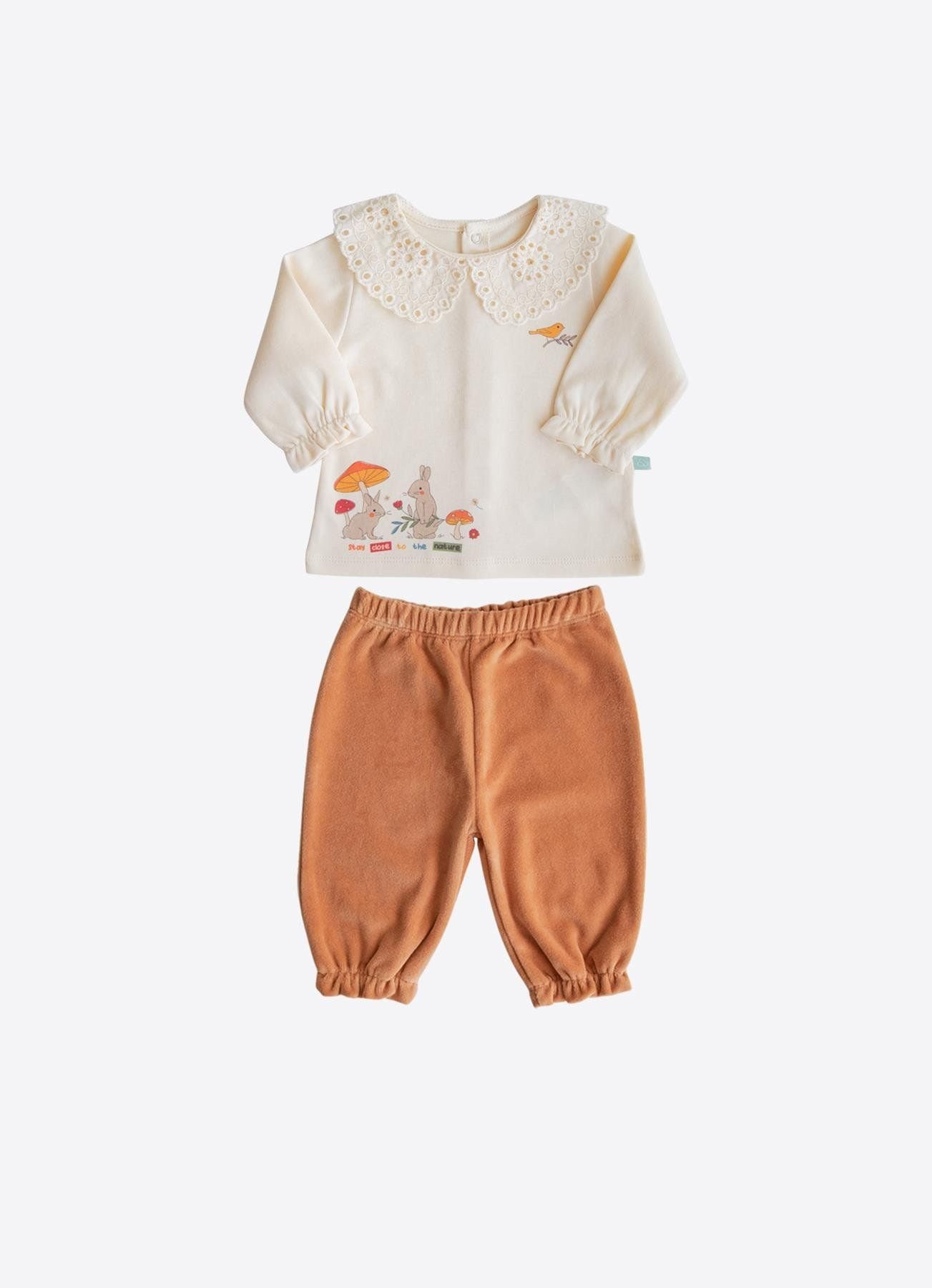 Kitikate mantarlı 2-li dəst, körpənizin dərisinə tam uyğun və rahatlıq təmin edən orqanik pambıq materialdan hazırlanıb. Bu dəstə uzunqol koynek, və uyğun naxışlı şalvar daxildir. Mantar (göbələk) temalı dizaynı ilə həm şirin görünüş yaradır, həm də körpənizin gündəlik geyimi üçün ideal bir seçimdir. Materialın nəfəs alma xüsusiyyəti və yumşaq toxuması sayəsində dərini qıcıqlandırmaz və narahatlıq yaratmaz. Geyindirilməsi və çıxarılması asan olan bu model, həm evdə, həm də gəzintidə istifadə üçün uyğundur. Kitikate markasının yüksək keyfiyyət və sağlamlıq standartlarına uyğun hazırlanmış bu dəst, xüsusilə hipoallergen və kimyəvi tərkibsiz məhsul axtaran valideynlər üçün əla seçimdir.