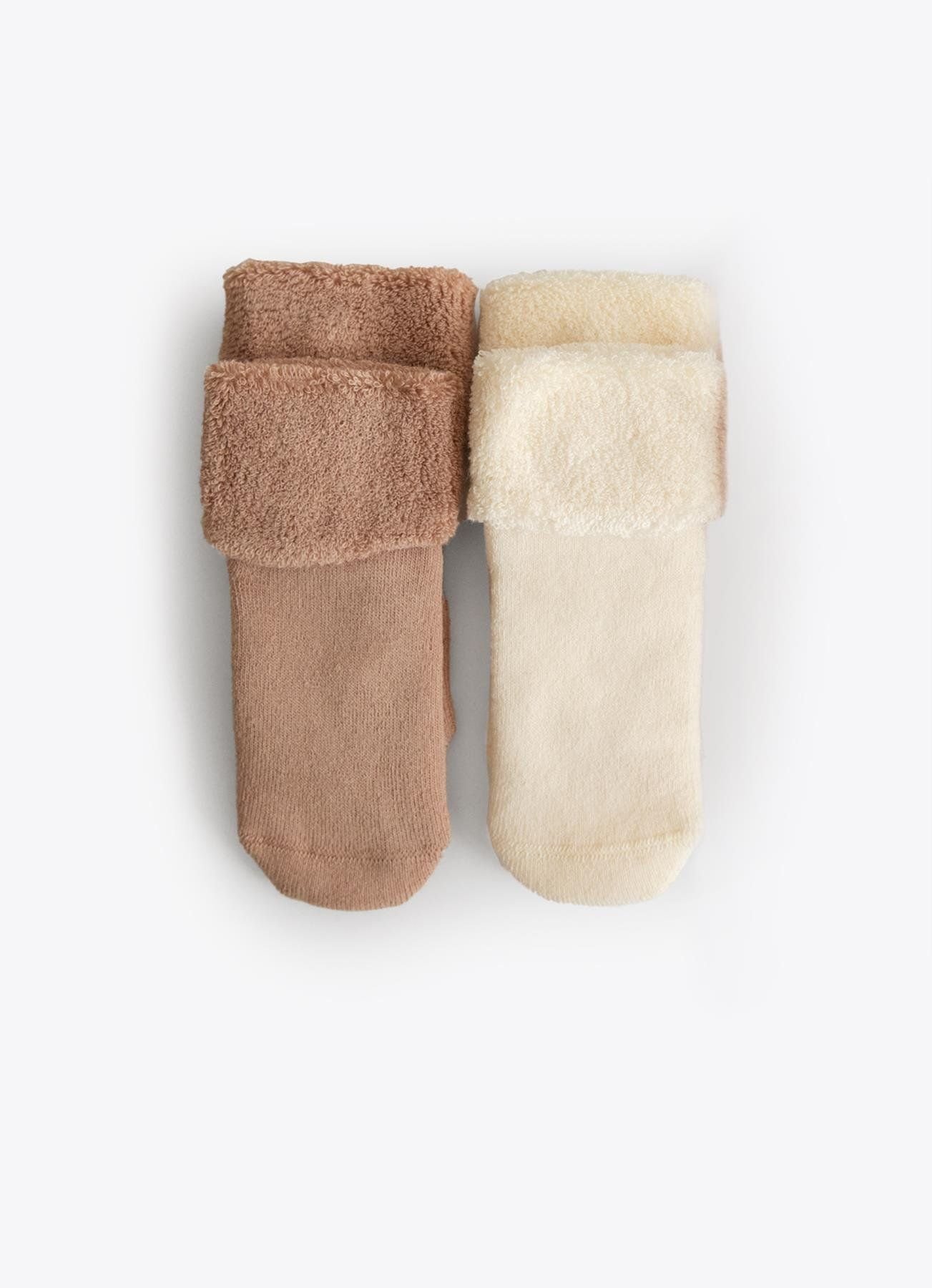 Kitikate 2-li havlu corab dəsti, körpənizin ayaqlarını isti və rahat saxlamaq üçün nəzərdə tutulub. Dəst 2 ədəd yüksək keyfiyyətli, yumşaq və qalın teksturalı corabdan ibarətdir. Tərkibində 100% orqanik pambıq və havlu (towel-texture) strukturlu material istifadə olunduğundan, körpənin dərisi ilə birbaşa təmasda olduqda belə qıcıqlanma və allergiya riski yaratmır.